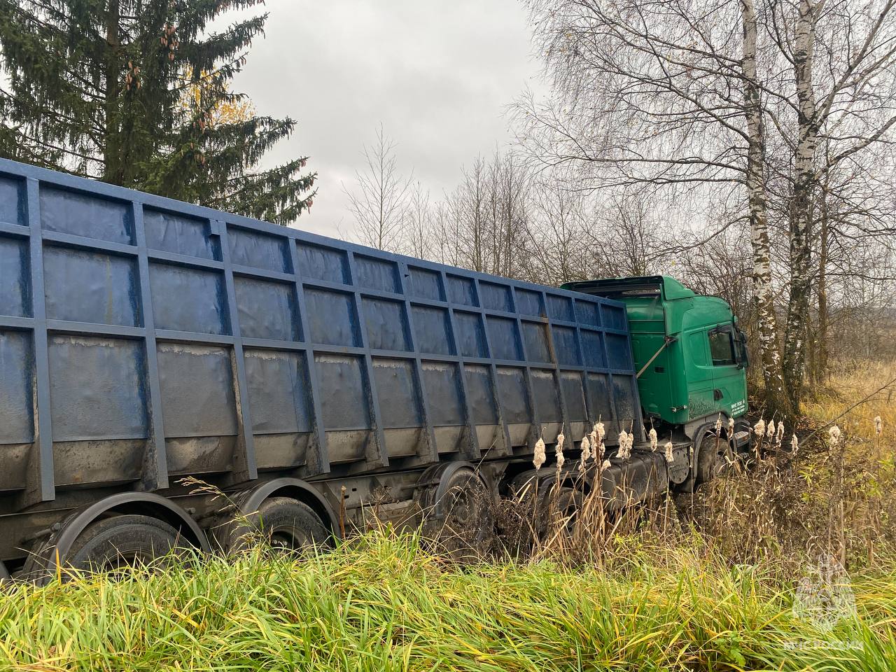 Стало известно, что водитель грузового автомобиля не справился с управлением, в результате чего транспортное средство съехало в кювет.