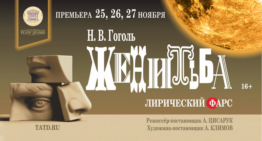 На этой неделе, 25, 26 и 27 ноября, в Тверском академическом театре драмы состоится премьера лирического фарса Н. В. Гоголя «Женитьба» в постановке режиссера Малого театра Андрея Цисарука.