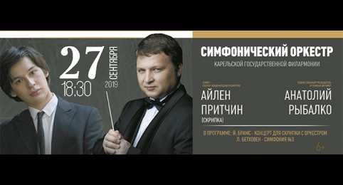 27 сентября в 18:30 в Тверской филармонии даст концерт симфонический оркестр Карельской государственной филармонии под управлением Анатолия Рыбалко. Солистом выступит лауреат международных конкурсов Айлен Притчин (скрипка).