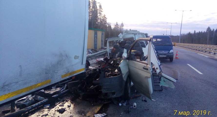 Утром 7 марта на М11 столкнулись КамАЗ и Фольксваген Транспортер.
